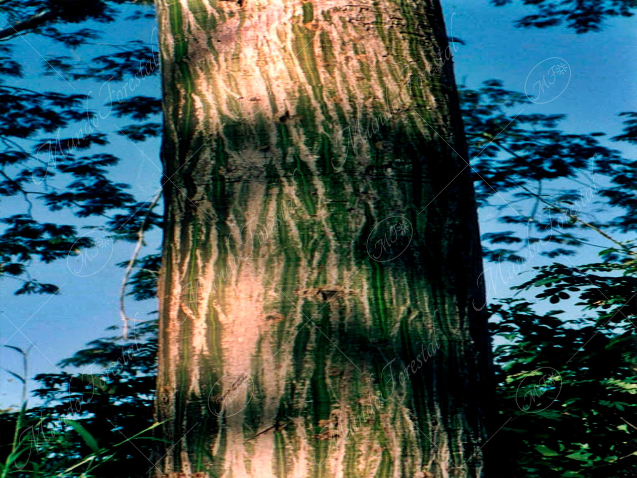 La curiosa corteza del ceibo (Pseudobombax septenatum, Fam.: Malvaceae), con sus largas franjas longitudinales color esmeralda, lo distinguen rápida y fácilmente de cualquier otro árbol en el mundo. No confundir al ceibo con la ceiba (Ceiba pentandra), que, aunque pertenecen a la misma familia, son dos árboles diferentes. Vergel, Cañas.