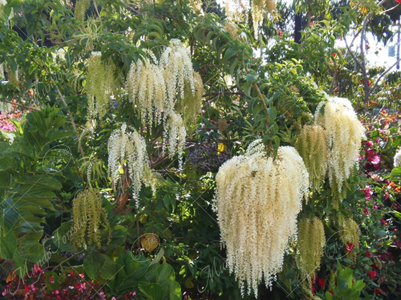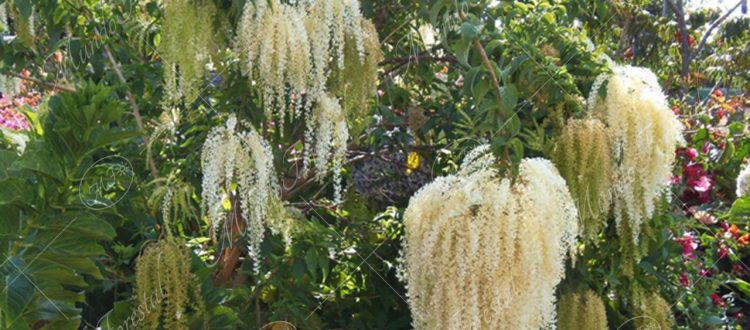 Especie arbustiva nativa de América del Norte, de grandes y hermosos ramos de flores perfumadas, presentes casi todo el año que recuerdan la espuma del mar de ahí su nombre en inglés ocean spray. Sus grandes racimos colgantes de pequeñas flores amarillentas atraen a muchas mariposas, abejas e insectos. A pleno sol se desarrollará muy bien al igual que sus flores, las que disminuyen si se planta a media sombra. Soporta bien las podas y se reproduce por estacas y esquejes.
